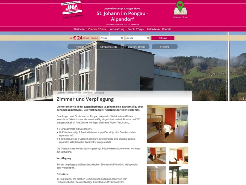 Zahlreiche gut ausgewählte "Salzburg-Tipps" und spezielle Angebote für bestimmte Zielgruppen ermöglichen dem Besucher bereits vor der Anreise die perfekte Planung seines Aufenthalts. Bildergalerien ermöglichen den Häusern, das Jugendherbergsleben emotional in Szene zu setzen.